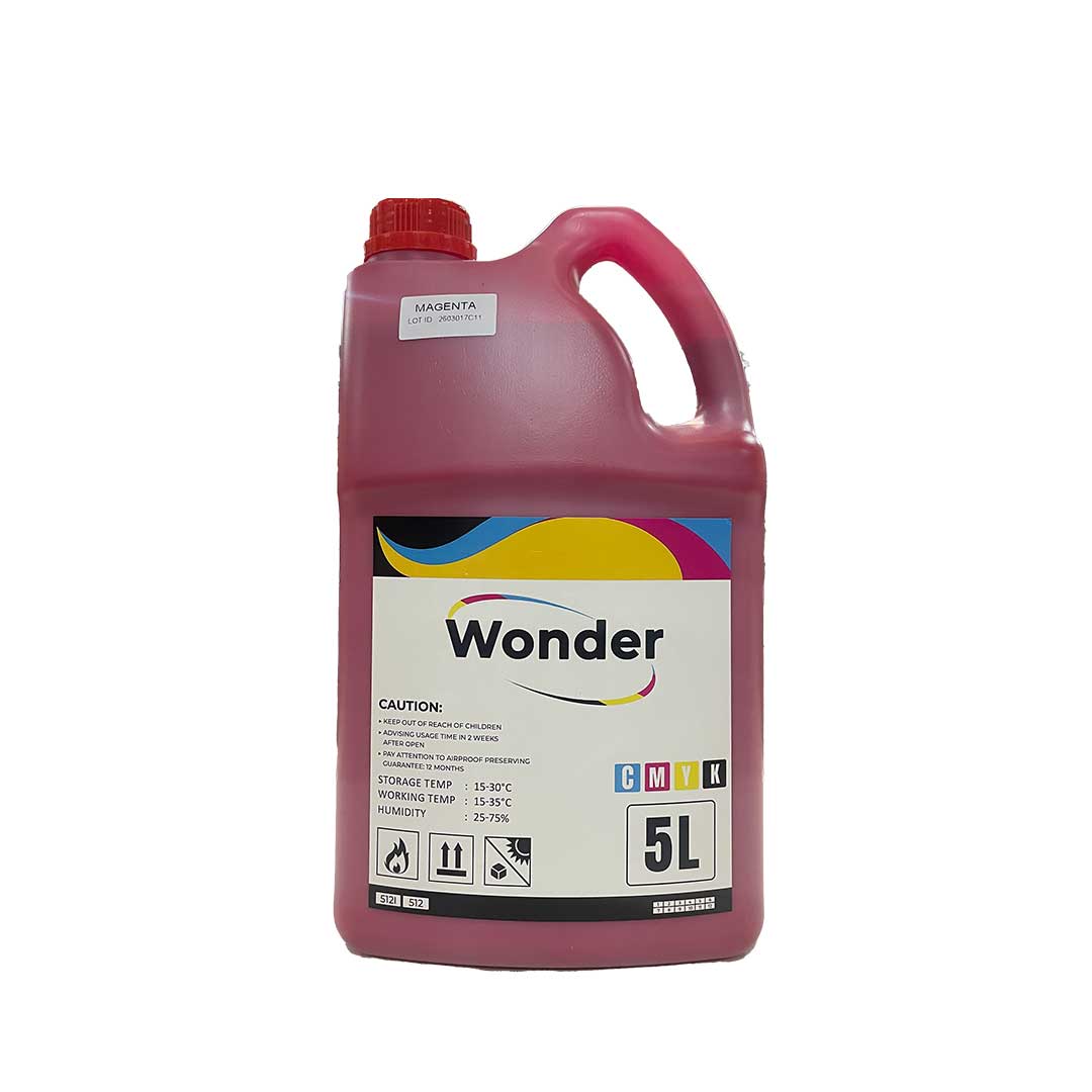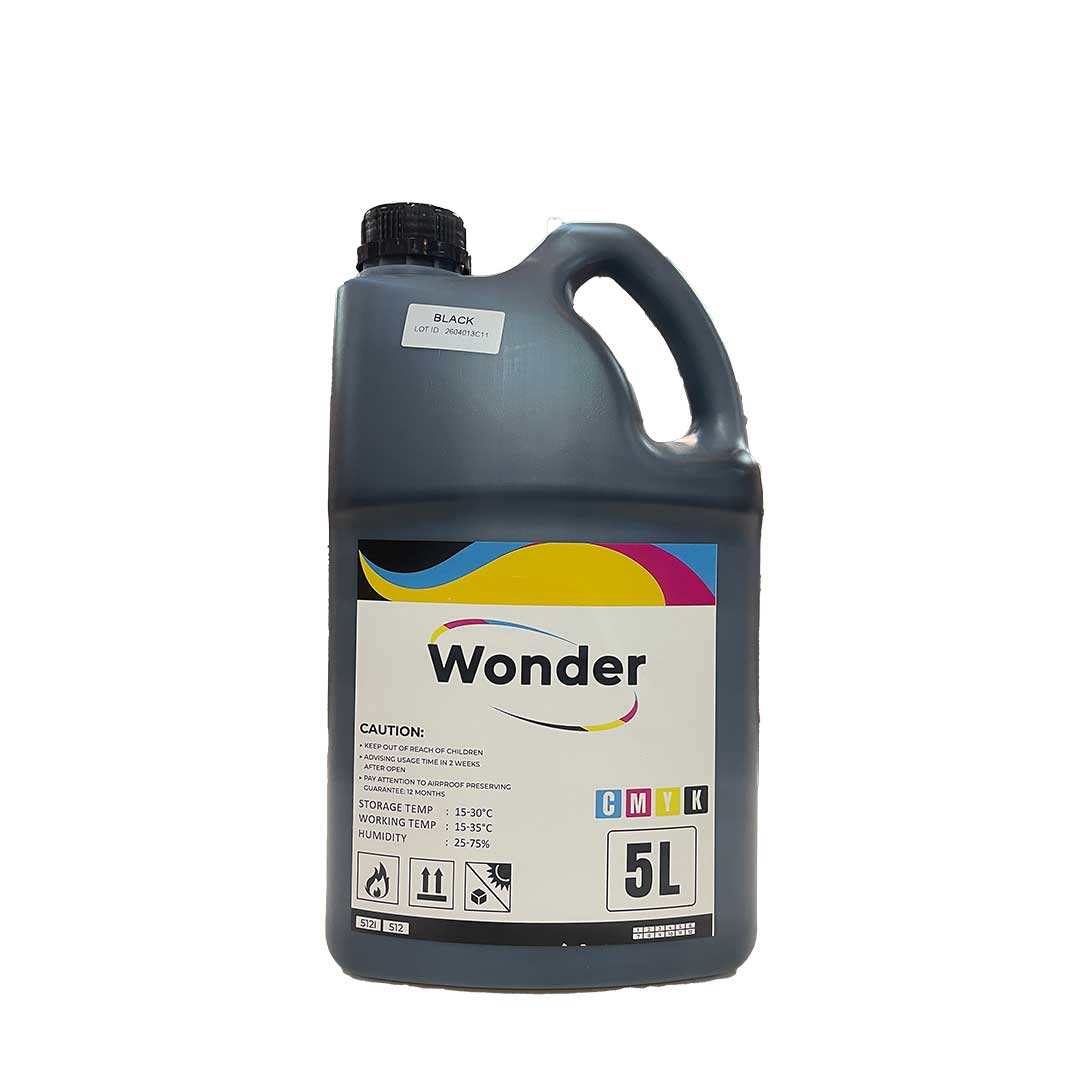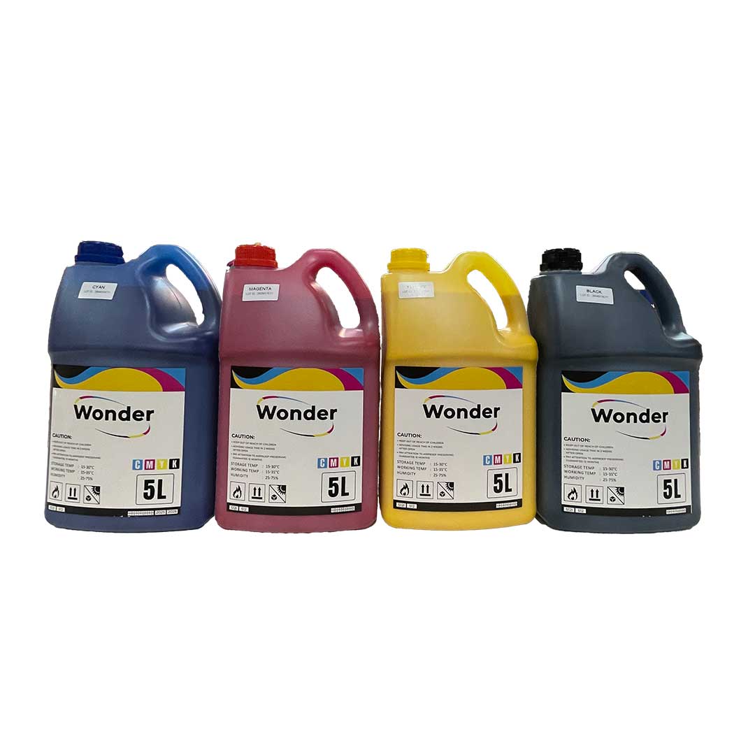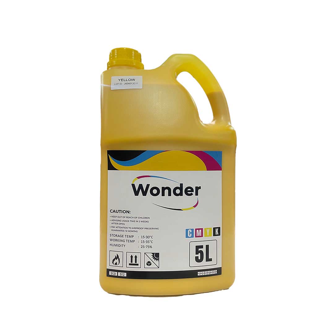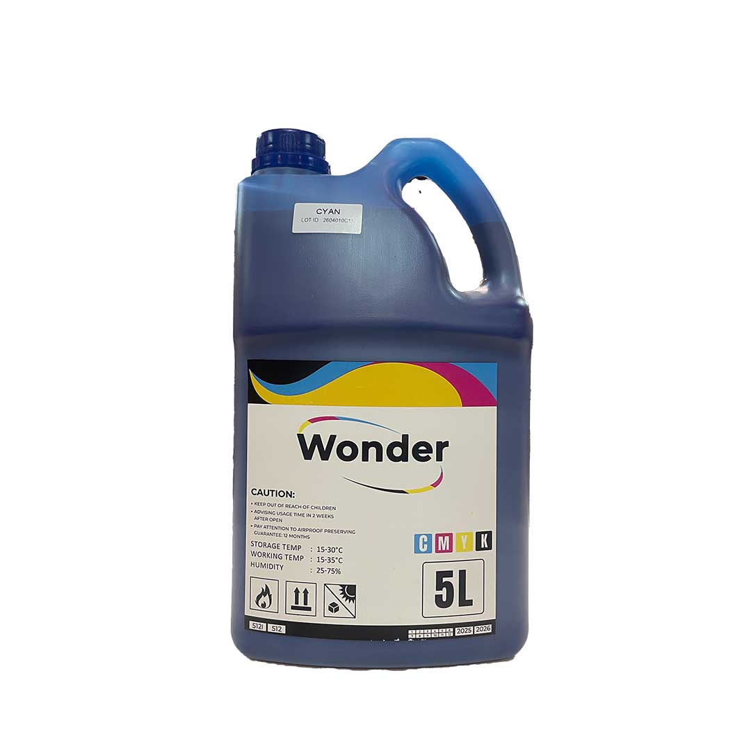 Tinta solvent Wonder kemasan 5 liter dirancang untuk kebutuhan cetak outdoor dengan ketahanan tinggi terhadap cuaca dan sinar UV. Formulasi stabil menghasilkan warna tajam, pekat, dan konsisten pada berbagai media seperti flexi banner, vinyl, dan stiker.